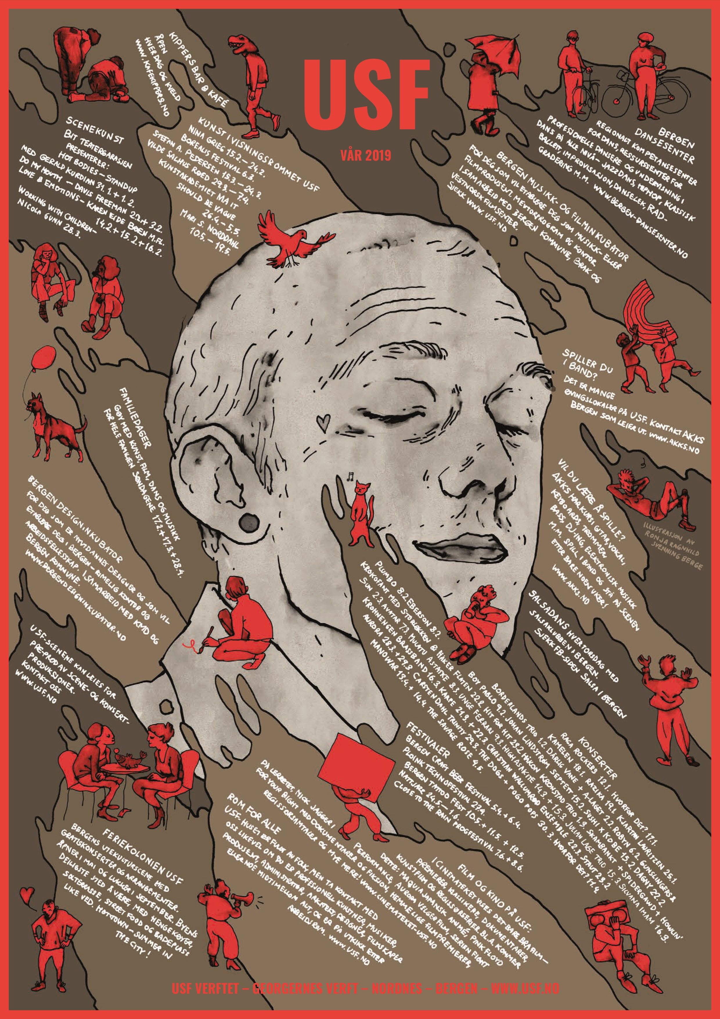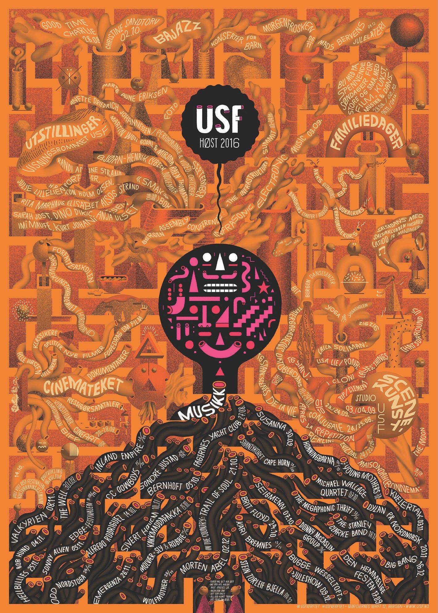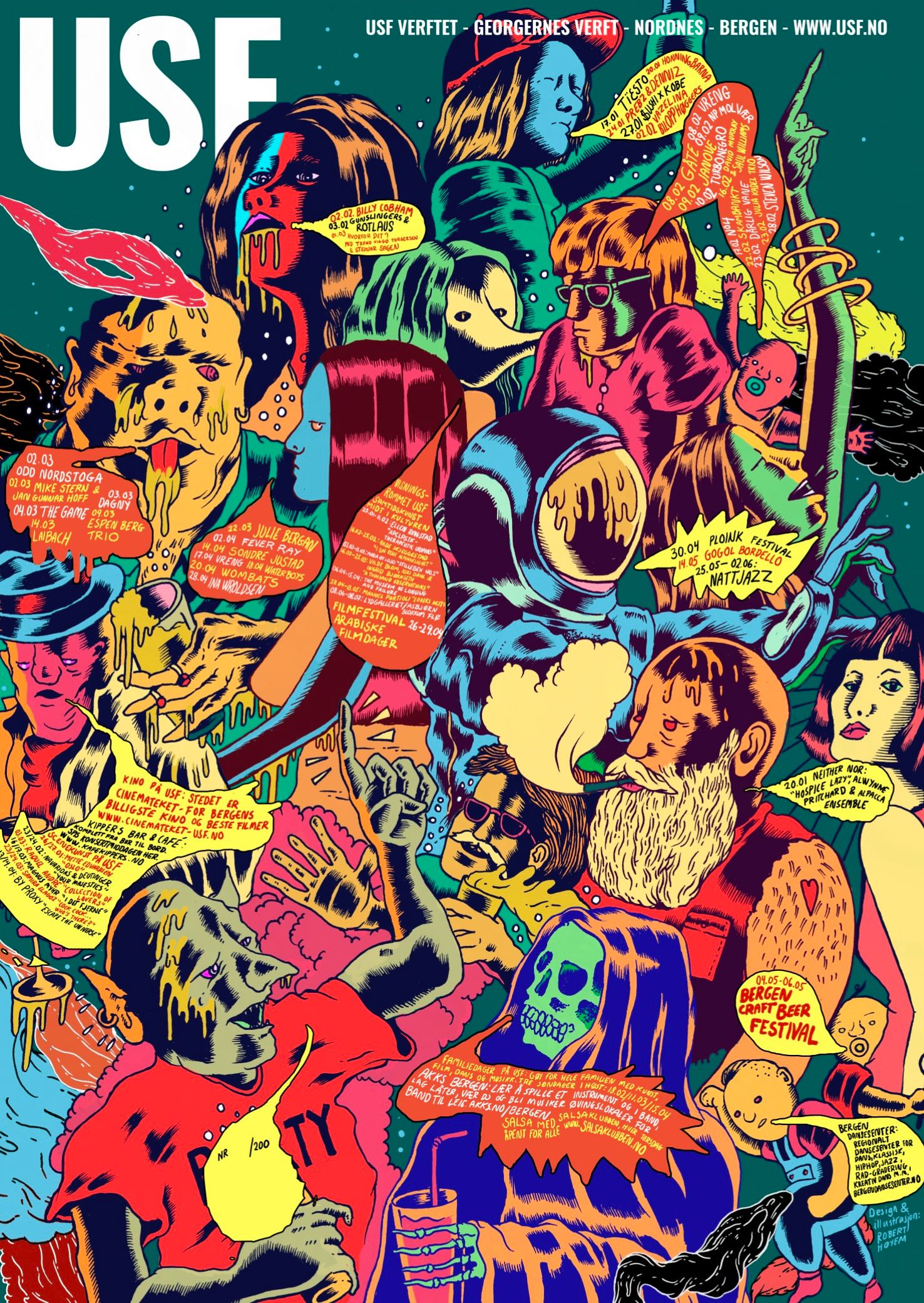 Det er alltid like spennende å se resultatet. Hovedføringen er helt enkelt at plakaten skal reflektere essensen av det som skjer på USF Verftet. Ellers er det helt åpent, og det er designerens tolkning av USF Verftet som formidles.