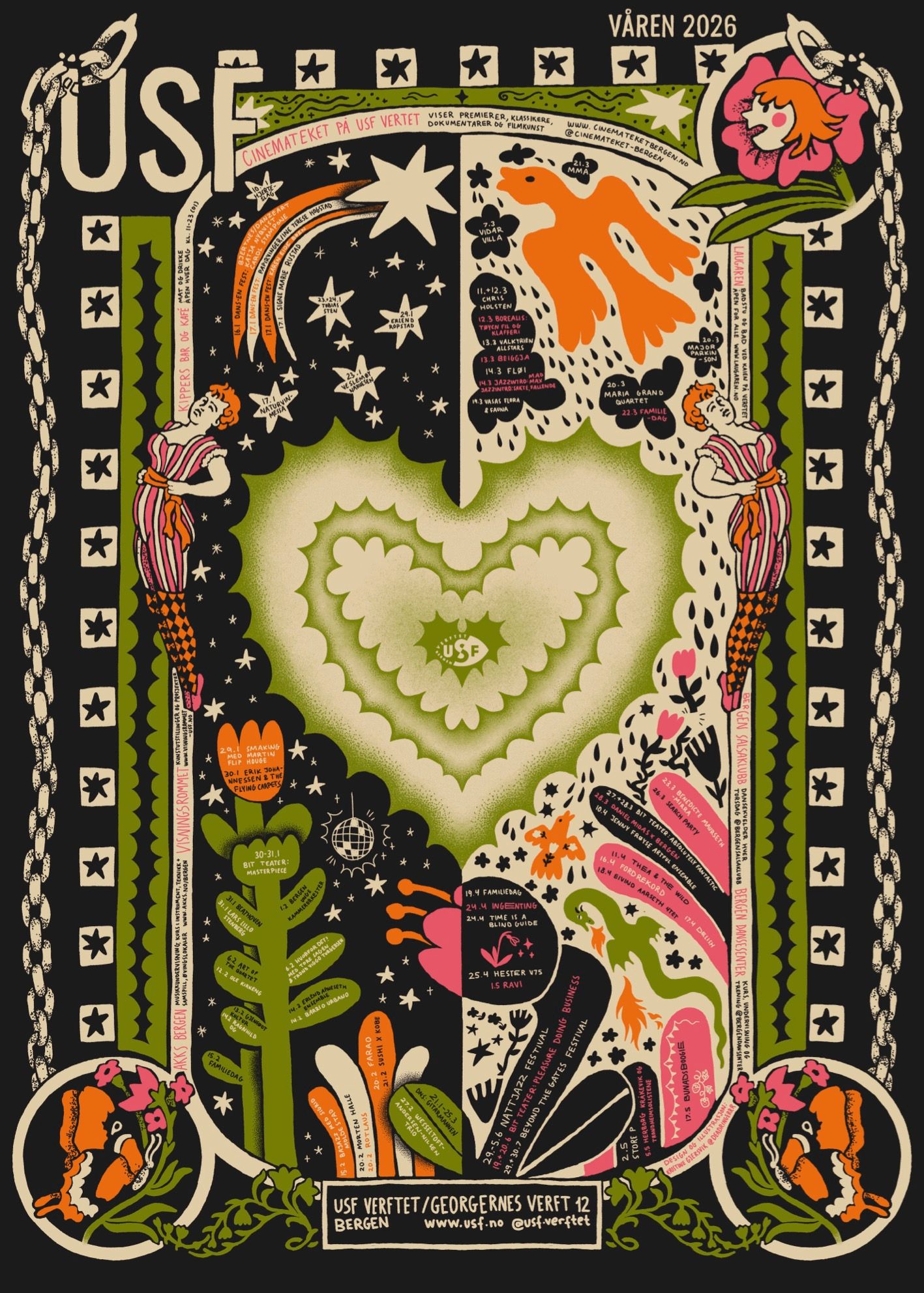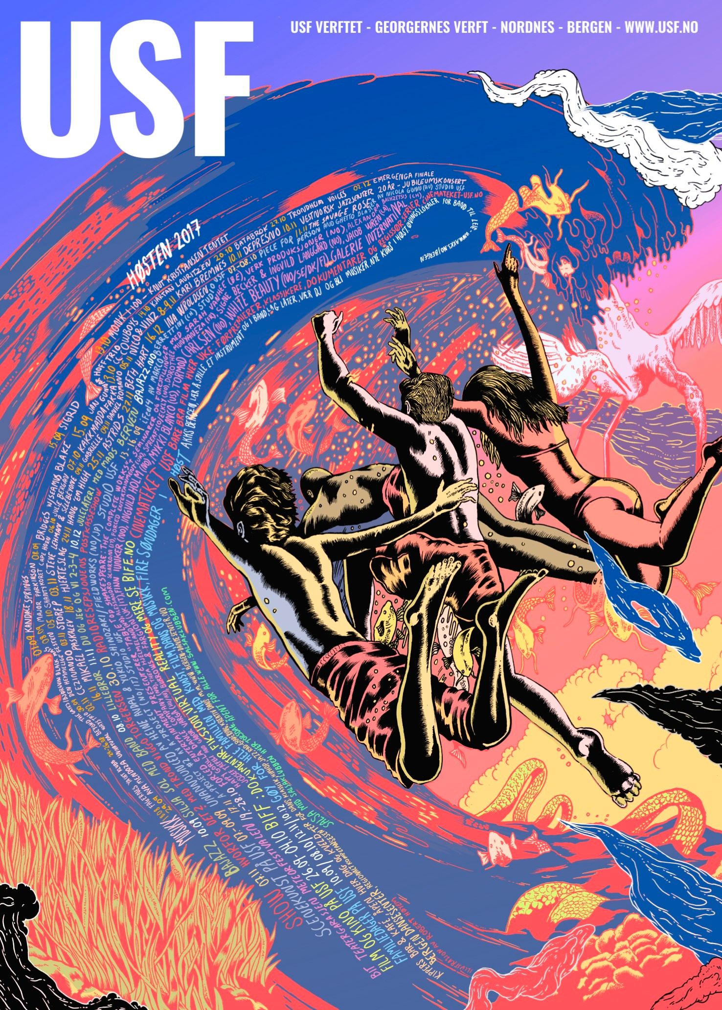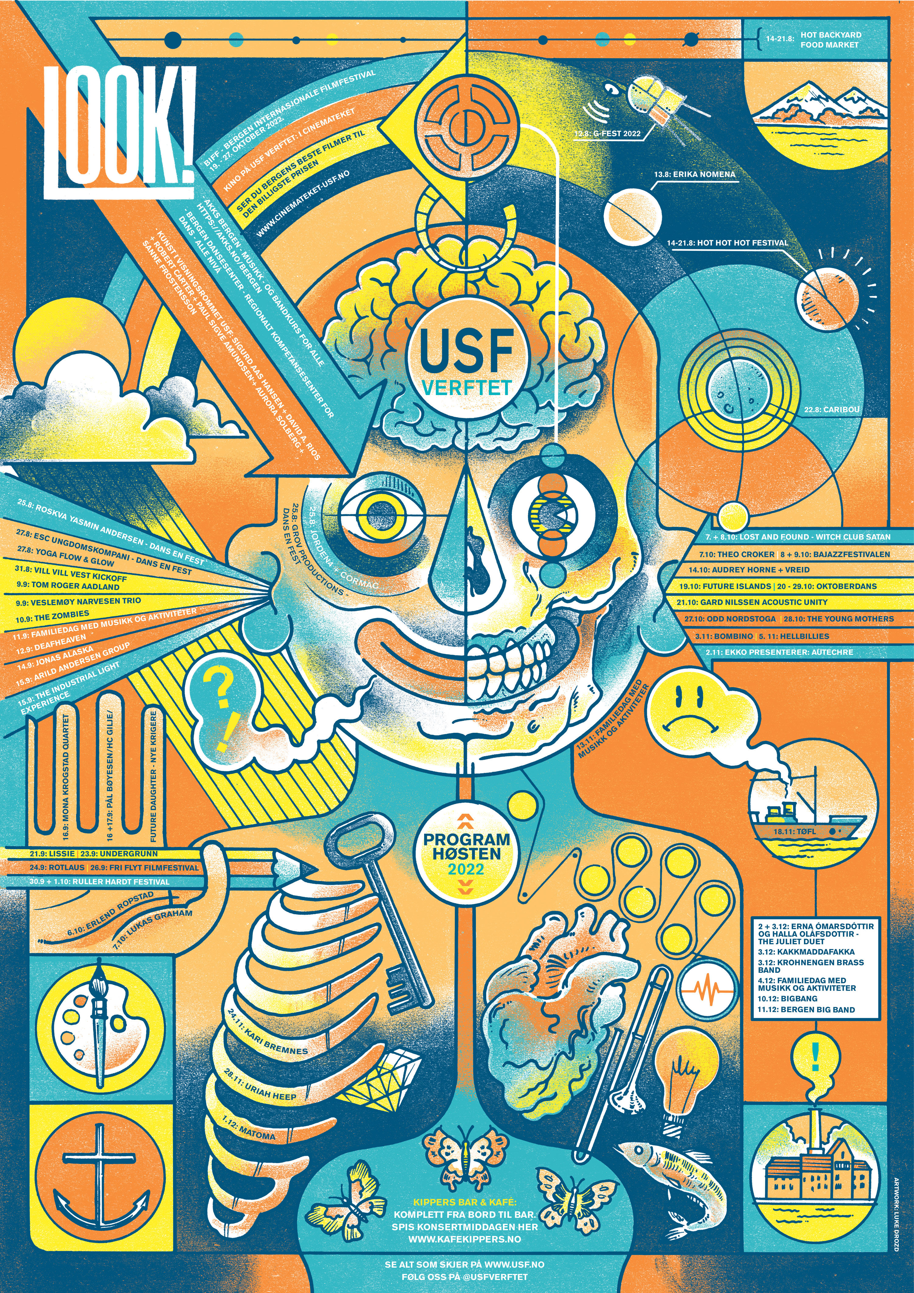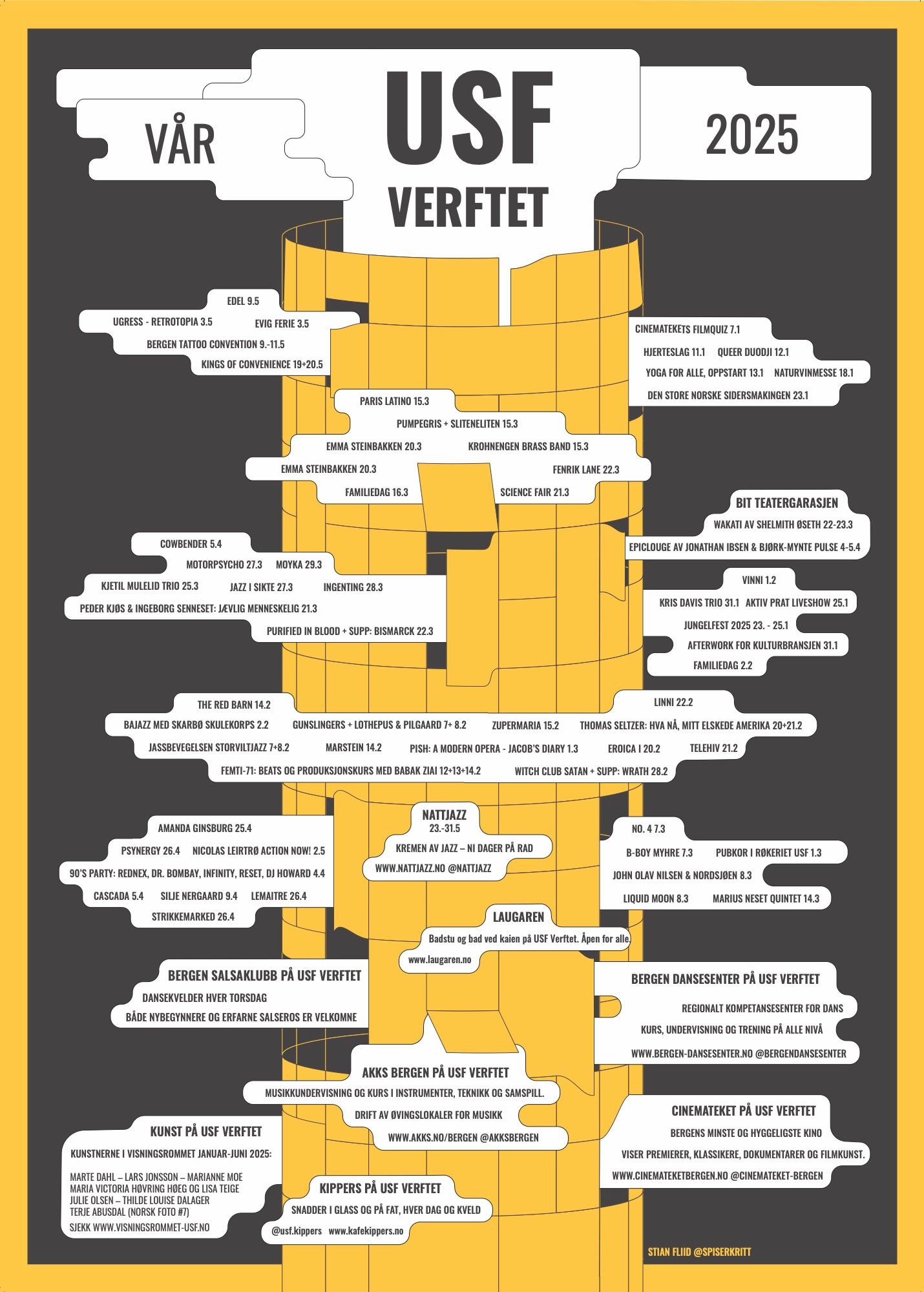 Det er alltid like spennende å se resultatet. Hovedføringen er helt enkelt at plakaten skal reflektere essensen av det som skjer på USF Verftet. Ellers er det helt åpent, og det er designerens tolkning av USF Verftet som formidles.